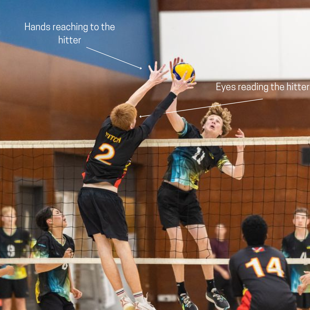Your eyework or reading is an important skill in blocking (as well as defense). Reading allows us to gain useful information on the opposing side of the net so we can anticipate their next action. When we do this, we are less surprised.