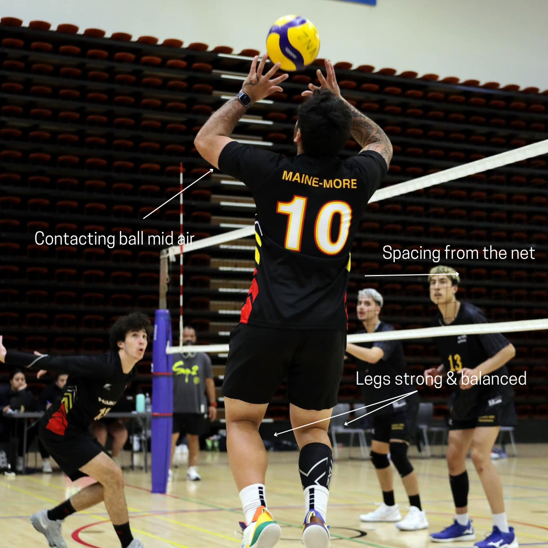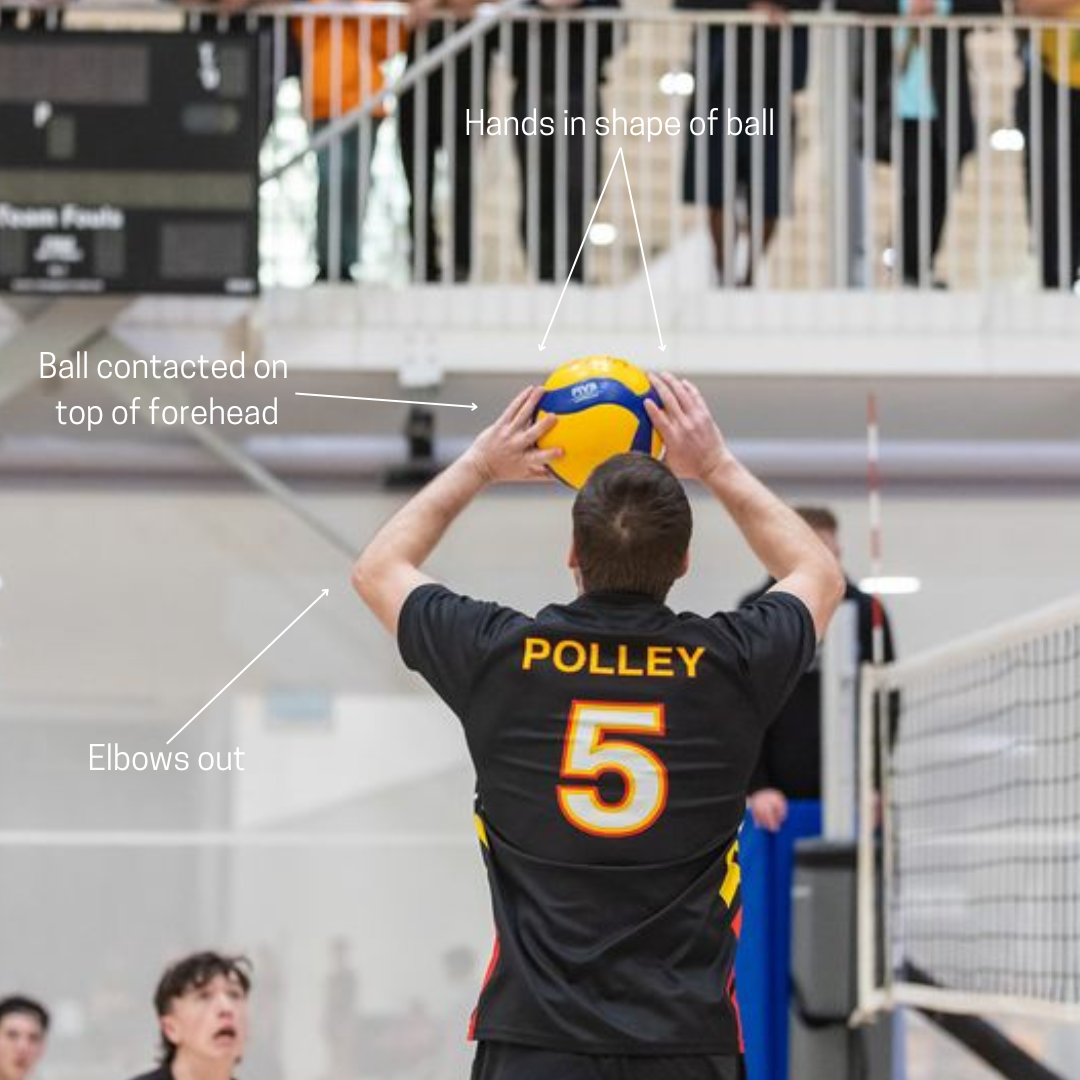 A good set should have minimal spin (clean release), height and accuracy. If setting to a hitter, we want the ball to be ‘hittable’. Keeping your actions simple is important when setting.